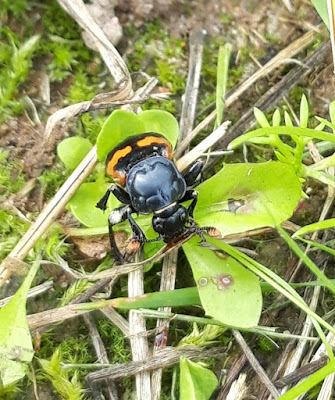 | A ground beetle, mainly nocturnal, predatory beetles that feed on snails, earthworms, and caterpillars. So that's good then. |